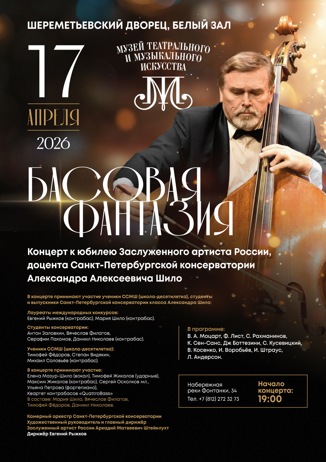 Дорогие друзья и поклонники контрабаса! Приглашаем вас на концерт к юбилею Заслуженного артиста России, доцента Санкт-Петербургской консерватории Александра Алексеевича Шило.